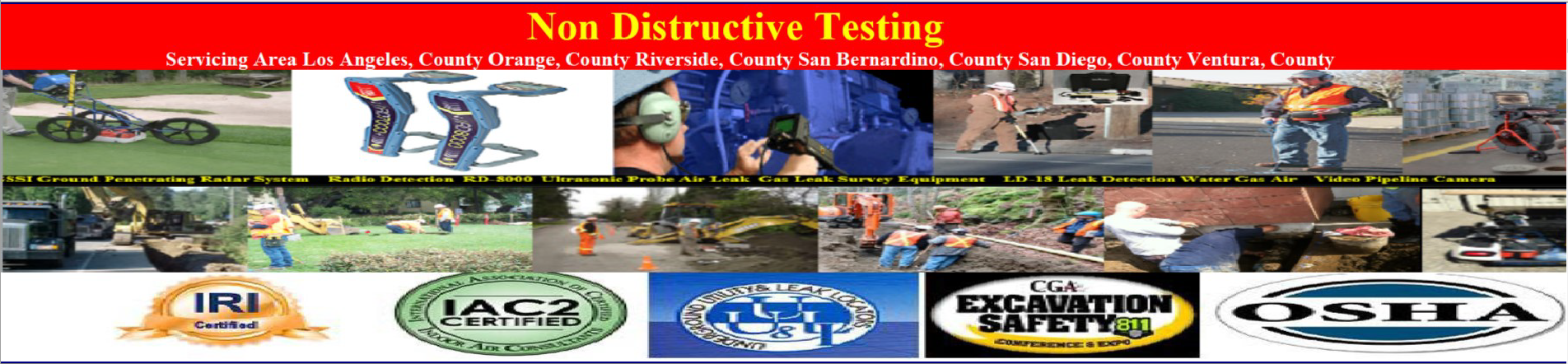 ity Locators San Bernardino,Riverside,Los Angeles,Orange,San Diego,Ventura CountShear Wall Inspections. Utility Locators San Bernardino,Riverside,Los Angeles,Orange,San Diego,Ventura  Concrete IDeputy Inspection Service. Call Now! Friendly & Personable · Last Minute Scheduling · 24 Hour Text & Call · Competitive Pricing Seox.  Private Utility Locating When Needed: For private lines and systems not covered by the service, including: Irrigation systems  Parking lot lighting  SecurUtility and fire control systems  Storage tanks  Process sewers  How it Works: Private locators use advanced technologies: Electromagnetic Locators: These use transmitters and receivers to detect signals on conductive lines.  Ground Penetrating Radar (GPR): A non-invasive tool that uses radar waves to map underground ities and structures.  Prevent costly damage, project delays, and safety risks associated with hitting private lines.  Utility Marking Colors  Once located, underground ities are marked using universal spray paint colors to identify their type. Red: Electrical, conduit, lighting Orange: Telecommunications, TV, alarm, signal Yellow: Gas, oil, steam, petroleum Green: Sewer, storm drain Blue: Potable water Purple: Reclaimed water, irrigation Pink: Temporary marking White: Proposed excavation Utility location - Wikipedia Utility color codes are used to identify existing underground ities in construction areas, to protect them from damage during ... Wikipedia How Utility Locators Work as their cathotic protection for corrosion. not used as often. but these are some of the passive modes that we have an... Private Utility Locating Services - Comprehensive Damage Prevention. The law requires that you prior to digging to have underground ities marked. However... 79936 EL PASO 60629 CHICAGO 11368 CORONA 90650 NORWALK 11220 BROOKLYN 90201 BELL GARDENS 90011 LOS ANGELES 91331 PACOIMA 11385 RIDGEWOOD 77084 HOUSTON 11373 ELMHURST 10467 BRONX 92335 FONTANA 11226 BROOKLYN 60618 CHICAGO 10025 NEW YORK 11236 BROOKLYN 11219 BROOKLYN 77449 KATY 90280 SOUTH GATE 11234 BROOKLYN 90250 HAWTHORNE 11211 BROOKLYN 11208 BROOKLYN 90805 LONG BEACH 08701 LAKEWOOD 11207 BROOKLYN 60639 CHICAGO 92503 RIVERSIDE 60632 CHICAGO 92683 WESTMINSTER 92336 FONTANA 78521 BROWNSVILLE 75052 GRAND PRAIRIE 91342 SYLMAR 10456 BRONX 90044 LOS ANGELES 10314 STATEN ISLAND 92704 SANTA ANA 60647 CHICAGO 11377 WOODSIDE 94565 PITTSBURG 60623 CHICAGO 92376 RIALTO 91744 LA PUENTE 92804 ANAHEIM 11212 BROOKLYN 11230 BROOKLYN 92154 SAN DIEGO 60804 CICERO 30043 LAWRENCEVILLE 60617 CHICAGO 11355 FLUSHING 11214 BROOKLYN 95076 WATSONVILLE 94112 SAN FRANCISCO 75217 DALLAS 93307 BAKERSFIELD 10002 NEW YORK 37013 ANTIOCH 91911 CHULA VISTA 30044 LAWRENCEVILLE 93033 OXNARD 91710 CHINO 11206 BROOKLYN 11221 BROOKLYN 11229 BROOKLYN 11204 BROOKLYN 92345 HESPERIA 10453 BRONX 93722 FRESNO 11203 BROOKLYN 60625 CHICAGO 75070 MCKINNEY 60608 CHICAGO 79912 EL PASO 77479 SUGAR LAND 92509 RIVERSIDE 92126 SAN DIEGO 10029 NEW YORK 37211 NASHVILLE 10462 BRONX 91910 CHULA VISTA 91706 BALDWIN PARK 90706 BELLFLOWER 90255 HUNTINGTON PARK 91335 RESEDA 94544 HAYWARD 93257 PORTERVILLE 19120 PHILADELPHIA 66062 OLATHE 87121 ALBUQUERQUE 91709 CHINO HILLS 75034 FRISCO 78660 PFLUGERVILLE 92553 MORENO VALLEY 10452 BRONX 10458 BRONX 77584 PEARLAND 11218 BROOKLYN 96797 WAIPAHU 22193 WOODBRIDGE 28269 CHARLOTTE 11235 BROOKLYN 11223 BROOKLYN 93550 PALMDALE 77429 CYPRESS 95823 SACRAMENTO 78572 MISSION 33012 HIALEAH 77573 LEAGUE CITY 93535 LANCASTER 75211 DALLAS 60620 CHICAGO 85364 YUMA 23464 VIRGINIA BEACH 92592 TEMECULA 60634 CHICAGO 11209 BROOKLYN 77379 SPRING 95630 FOLSOM 94110 SAN FRANCISCO 78577 PHARR 63376 SAINT PETERS 93065 SIMI VALLEY 10469 BRONX 85225 CHANDLER 10468 BRONX 77083 HOUSTON 60628 CHICAGO 77494 KATY 92805 ANAHEIM 91766 POMONA 91402 PANORAMA CITY 99301 PASCO 60505 AURORA 33186 MIAMI 80013 AURORA 89110 LAS VEGAS 60085 WAUKEGAN 93274 TULARE 93727 FRESNO 60641 CHICAGO 75228 DALLAS 94587 UNION CITY 10466 BRONX 77450 KATY 10463 BRONX 10457 BRONX 07055 PASSAIC 90022 LOS ANGELES 90262 LYNWOOD 85032 PHOENIX 93536 LANCASTER 92703 SANTA ANA 94536 FREMONT 21234 PARKVILLE 11375 FOREST HILLS 33024 HOLLYWOOD 97007 BEAVERTON 94533 FAIRFIELD 89108 LAS VEGAS 30349 ATLANTA 10472 BRONX 11215 BROOKLYN 92882 CORONA 27610 RALEIGH 90026 LOS ANGELES 30024 SUWANEE 19111 PHILADELPHIA 11233 BROOKLYN 45011 HAMILTON 92105 SAN DIEGO 77095 HOUSTON 78613 CEDAR PARK 37042 CLARKSVILLE 77036 HOUSTON 60614 CHICAGO 47906 WEST LAFAYETTE 95035 MILPITAS 92114 SAN DIEGO 60657 CHICAGO 90631 LA HABRA 07087 UNION CITY 33157 /leak-detection-services Leak detection ca cost Leak detection ca reviews leak detection near me residential leak detection services leak detection company Residential leak detection canada services/leaking-toilets-faucets water leak detectionImages s r California ∙ Choose area Supeior· Plumbers | Plumber 6 years in business · Serves · Free estimate Call Plumbing Services Inc· Plumber 15 years in business · Free estimate Call More plumbers : Non-Invasive Leak Detection Services Our expertise and industry-leading technology enable us to locate all types of leaks, including hidden water and sewer leaks. Identifying leaks early can save ... ‎Locations · ‎DIY Leak Tests · ‎Pool Leak Detection · ‎Residential Services California Leak Detection Specialists eak detection ca from California Leak Detection Specialists is a licensed, bonded and fully insured plumbing contractor specializing in residential leak detection and repairs. People also ask How much does a leak detection system cost for a house? Is leak detection worth it? Why is leak detection so expensive? How do I find out where a water leak is Leak Detection, Inc. Leak Detection Southern California's premiere leak detection and plumbing company. 24 Hour Emergency Service for homeowners and insurance companies. of Riverside › riverside to schedule leak detection services in Riverside or a surrounding area! Plumb